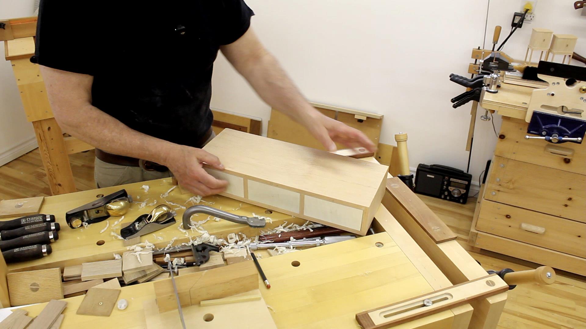 Watch how I lay out a board and cut sequence for a waterfall effect in the Tea Cabinet sides, tops and bottoms. Discover how to easily create case miter joinery to use in your next projects. The build, plans and course are based on skills developed in a functioning furniture making studio. My build techniques, processes, tips and techniques will benefit you in your future projects.